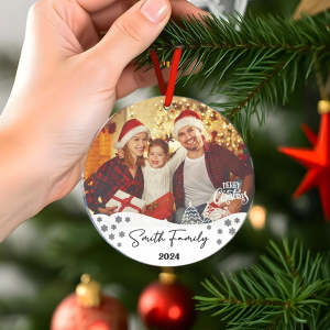 パーソナライズされた写真付きクリスマスオーナメント 家族名付き 家族へのクリスマスオーナメントギフト