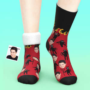 カスタム厚手フェイスソックス-ペット写真入れ名入れ可能な面白い犬柄のオリジナル秋冬用暖かい靴下プレゼント
