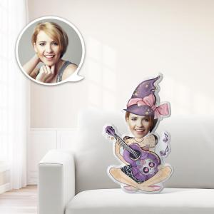 ハロウィンカスタム顔写真入りクッションミニー人形クッションオリジナル顔写真クッション-ギターを弾いてる女性