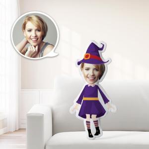 ハロウィンカスタム顔写真入りクッションミニー人形クッションオリジナル顔写真クッション-箒の魔女