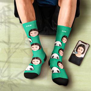 カスタムフェイスソックス-写真入り名入れ可能なパンダと竹柄のオリジナル靴下