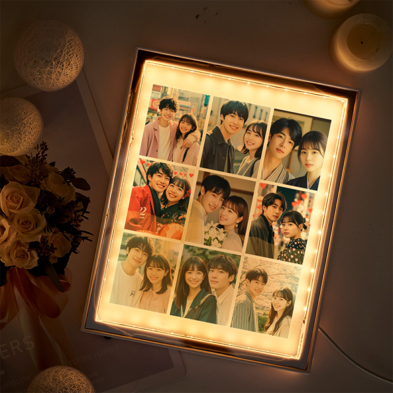 ガールフレンドへのギフトカスタマイズされたカップルミラーランプ ナイトライトカップルフォトフレーム誕生日プレゼントガールフレンドへのバレンタインデーのギフト