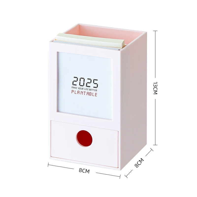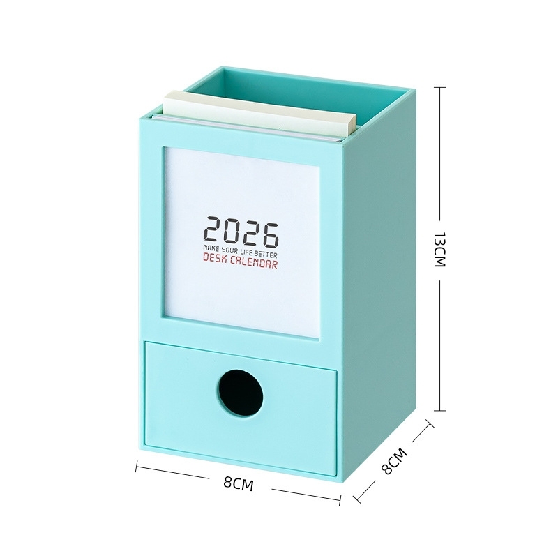 2026 クリエイティブ ペンホルダー カレンダー デスクオーガナイザー スタイリッシュ デスクトップカレンダー 8*8*13cm