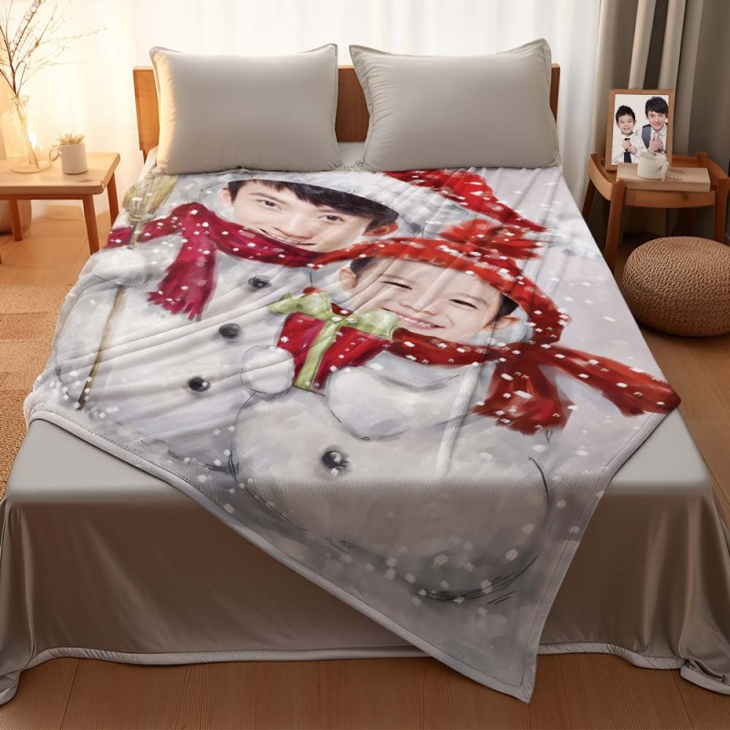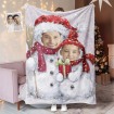 カスタムフォトブランケット - 親子写真入れ可能なクリスマスフリース毛布ひざかけギフト - 雪だるま