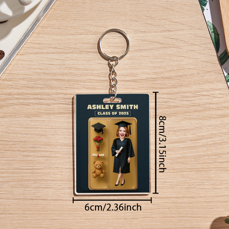 カスタム2d効果アクションフィギュアカスタマイズ可能なヘッドパッケージおもちゃ箱スタイルのアートギフトパーソナライズされたアクリルキーホルダー友人への卒業ギフト