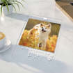 カスタムフォトアクリル製写真立て‐愛犬の写真と名前とメッセージ入れ可能なメモリーを込めった卓上ペットグッズプラーク-肉球柄縦向き