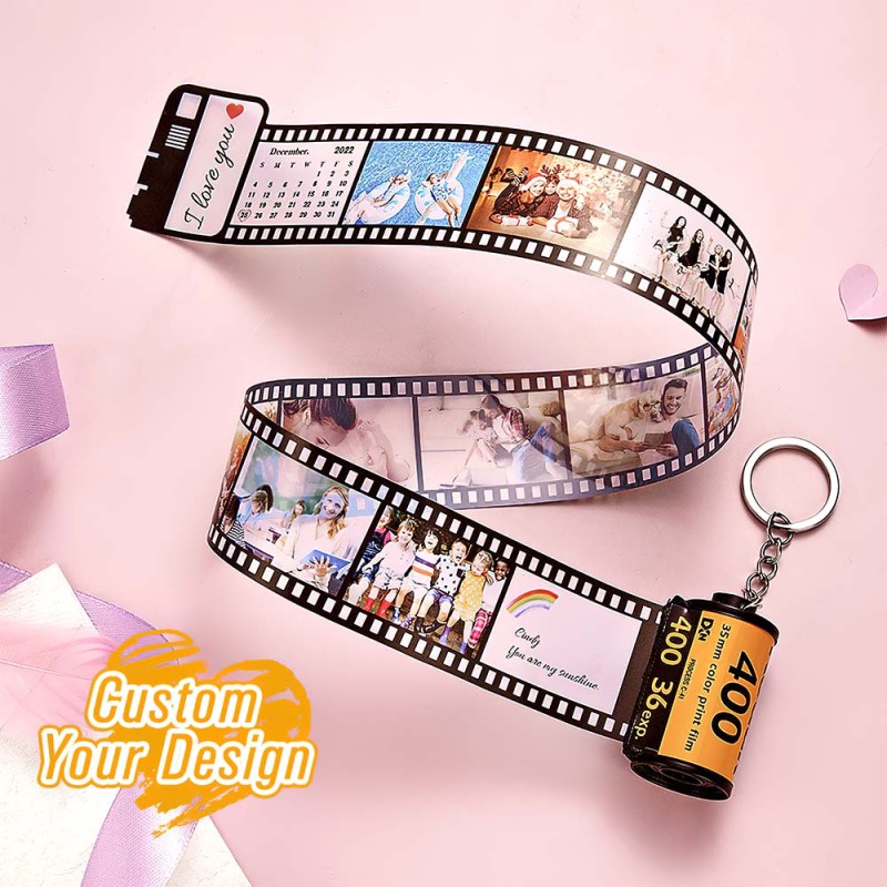 カスタムフォトカメラロールキーホルダー - 写真や記念日日付入れ可能なベスト贈り物恋人へ