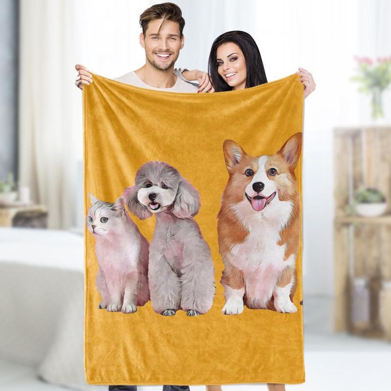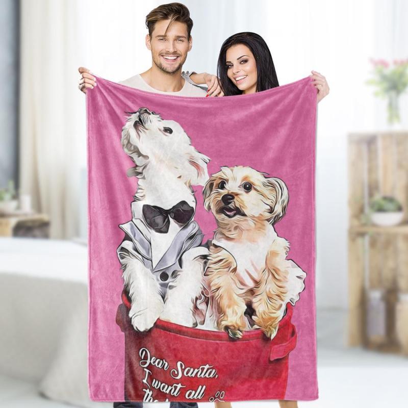 カスタムパーソナライズされた写真コラージュブランケット犬アート ポートレート フリース ブランケット