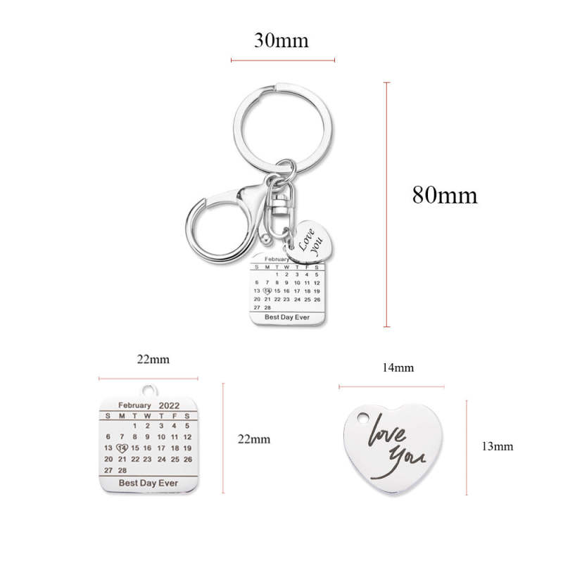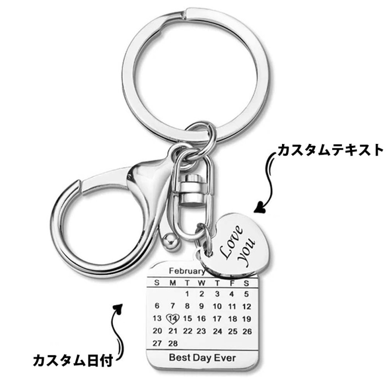 カスタムカレンダーキーホルダー-バレンタインプレゼント刻印カレンダーキーホルダー日付を保存キーホルダー結婚式の日付ペンダント