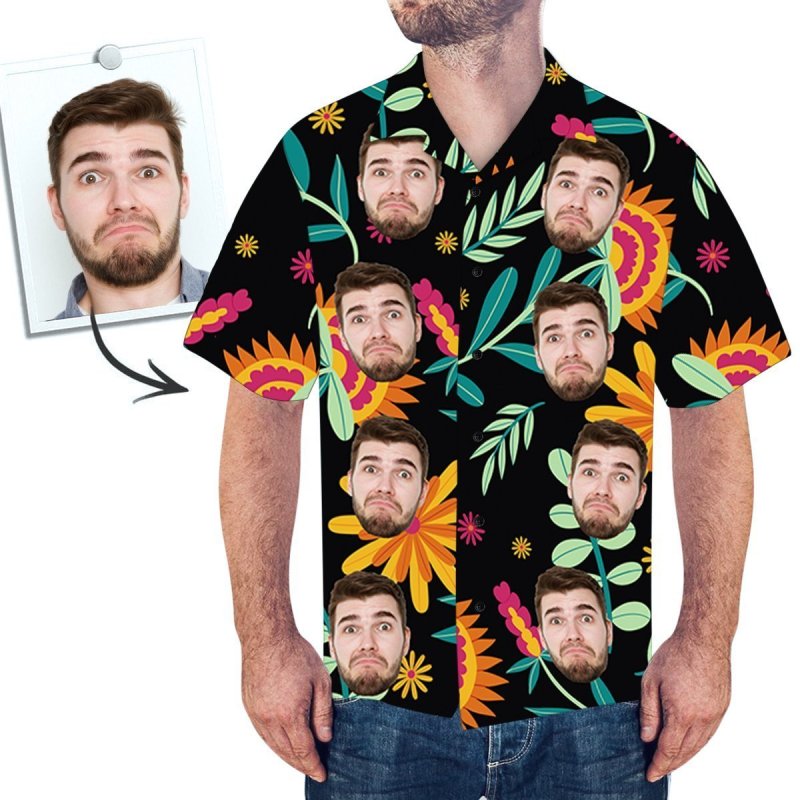 カスタムフェイハワイTシャツ-フェイスUKのカスタムアロハシャツ全体にカラフルな花をプリント