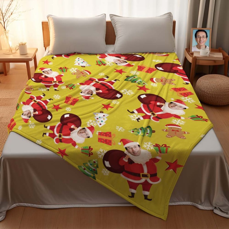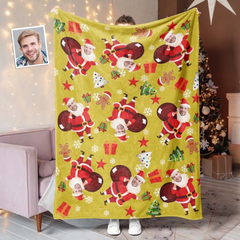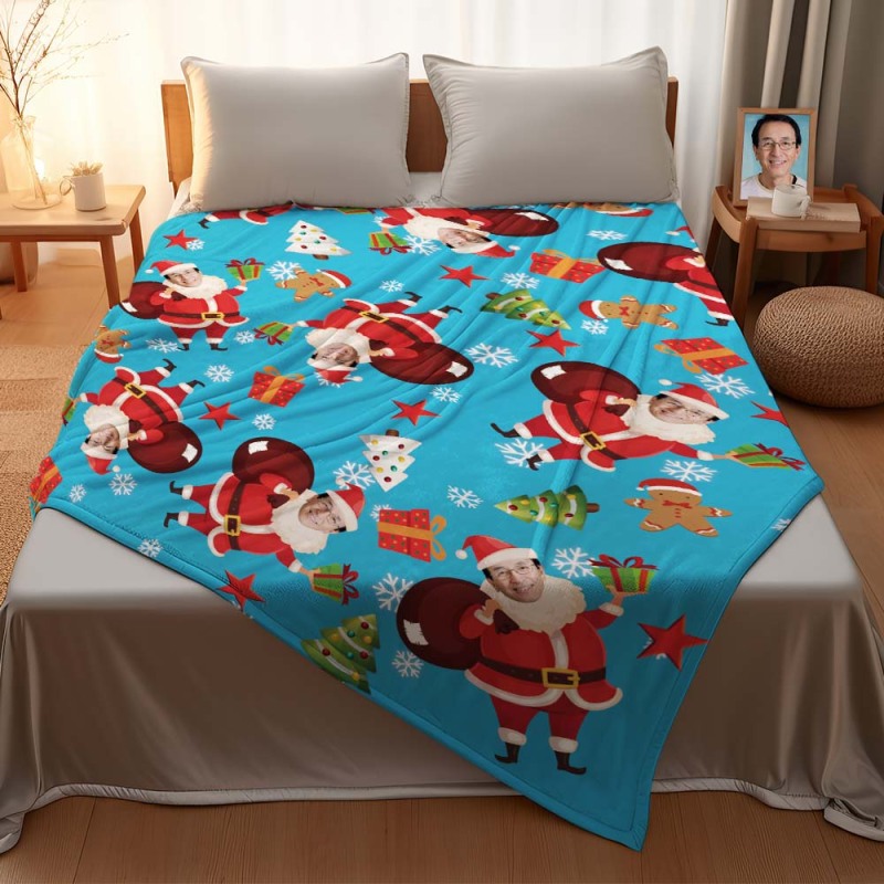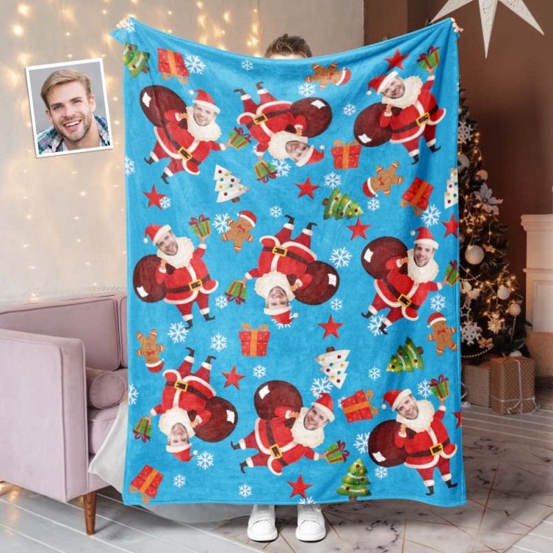 カスタムフォトブランケット - 写真入れ可能なクリスマスフリース毛布ひざかけギフト - プレゼントを届けるサンタクロース