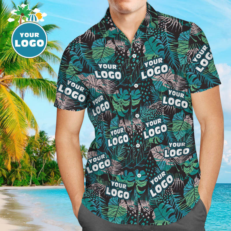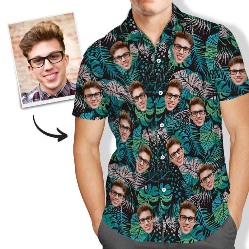 カスタムフェイハワイTシャツ-男性のための顔の大きな葉の半袖シャツとカスタムアロハシャツ