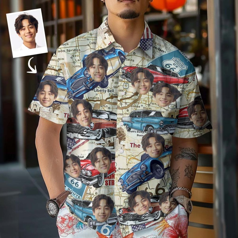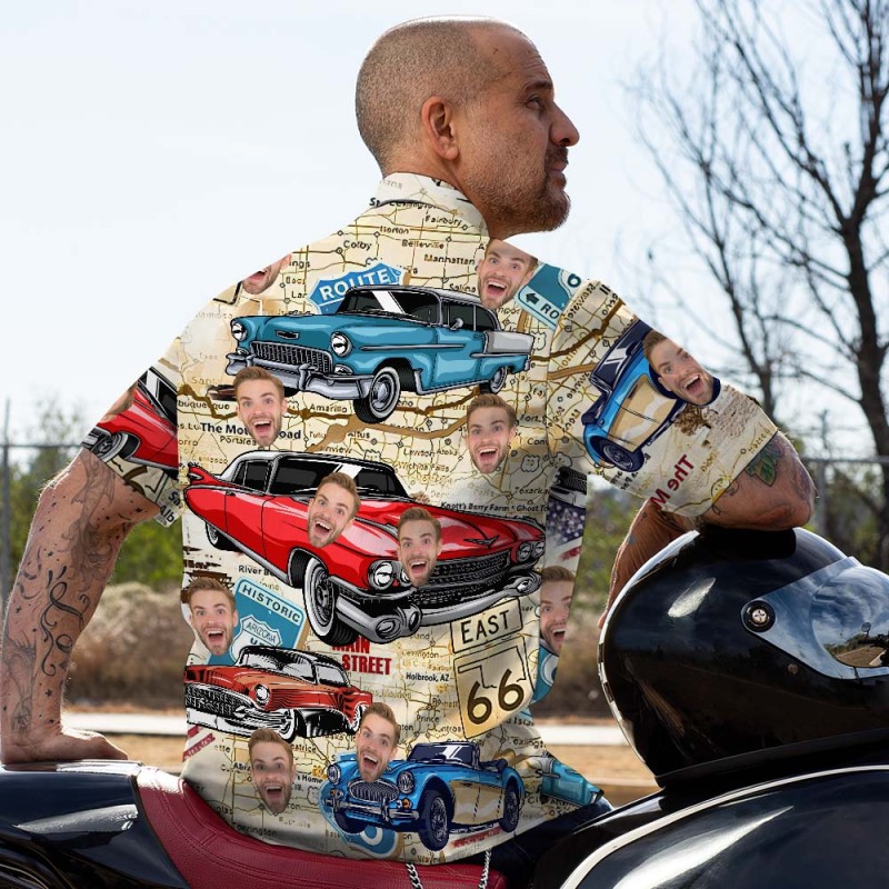 カスタムフェイスハワイアンシャツ ヴィンテージカーシャツ パーソナライズされた車の写真シャツ