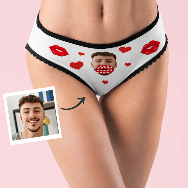 カスタムフェイスAR女性用パンティー-写真入れ可能な面白い唇柄のパンティーショーツ彼女へのバレンタインデーギフト