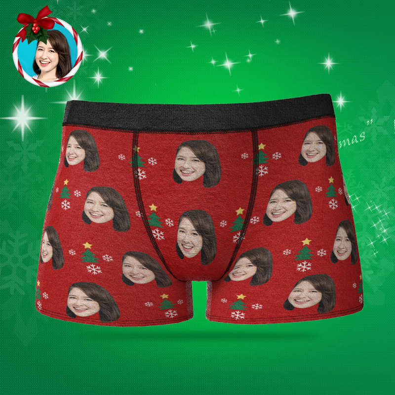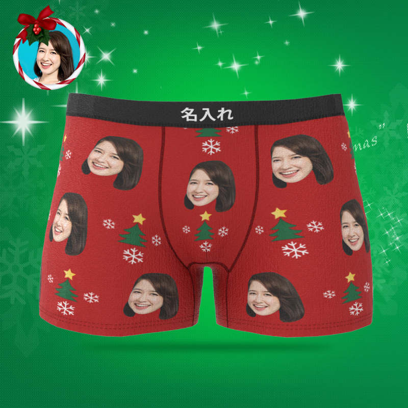 カスタムフォトボクサーパンツ-写真入れ可能なオリジナルクリスマス顔下着ショーツギフト-クリスマスツリ—