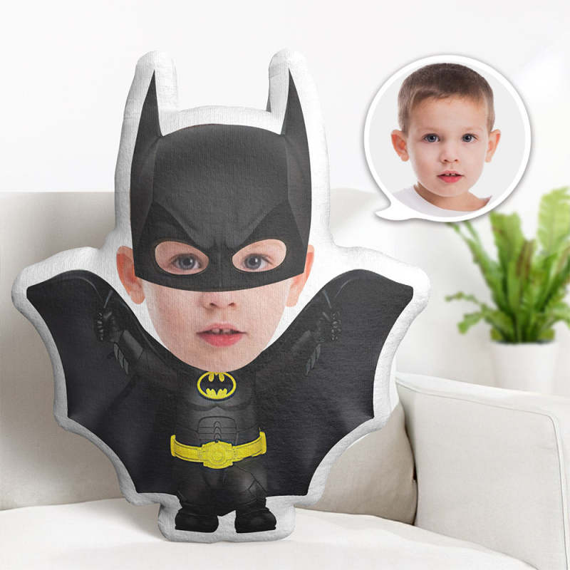 カスタムフェイスピロー パーソナライズされた写真ピロー ブラック バットマン ミニ ピロー ギフト 子供用