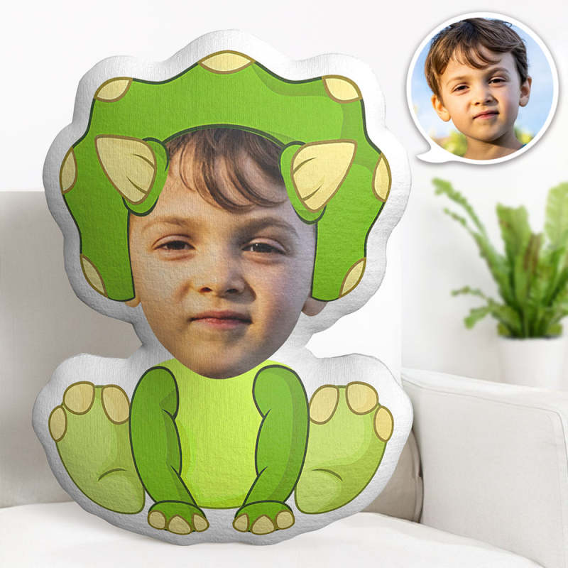カスタムフェイスピロー パーソナライズされた写真ピロー 2つの角のある恐竜 ミニピロー 子供へのギフト