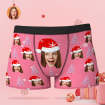 カスタムフォトボクサー-イギリスパンデミックの写真入れ可能なクリスマスツリー柄のピンクのクリスマスボクサーパンツギフト