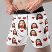 カスタムフェイス男性用ボクサー-写真入れ可能な赤い唇とハート柄の面しろボクサーパンツ彼氏へのバレンタインデーギフト