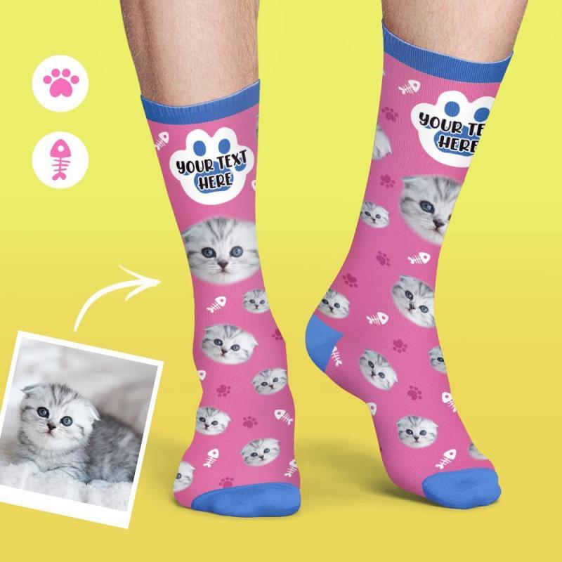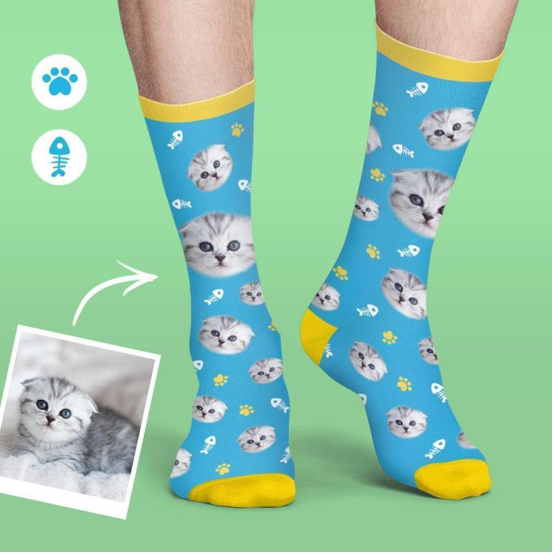 カスタムフェイスソックスオリジナル靴下-猫顔写真名入れ可能ソフトフォトソックス