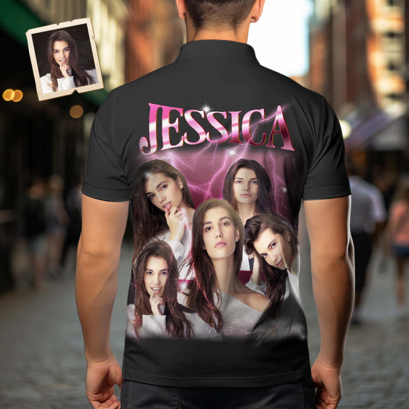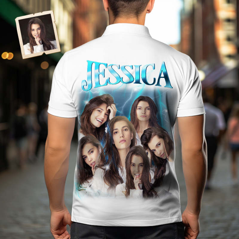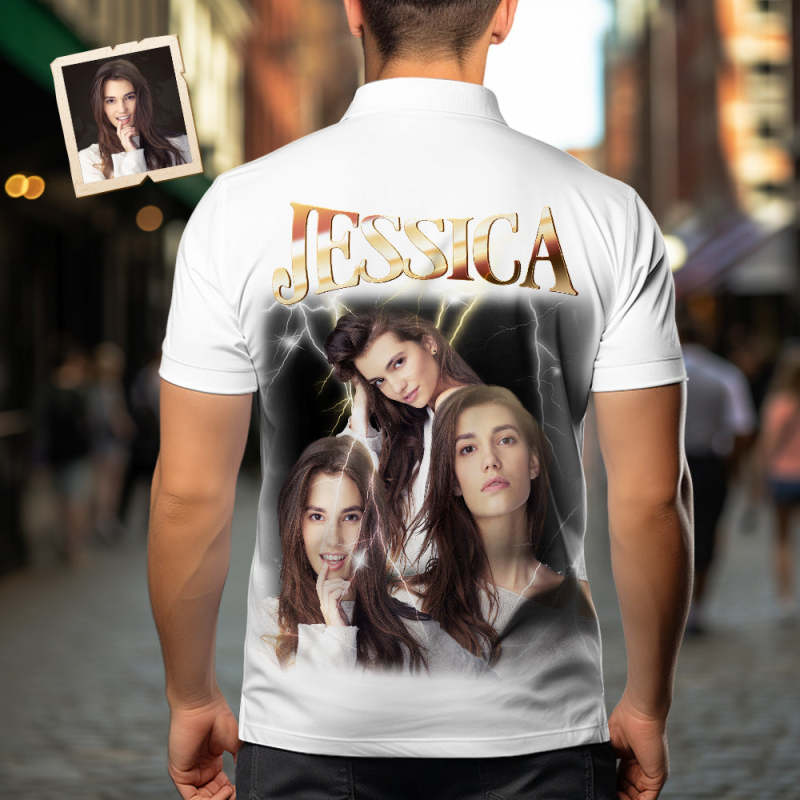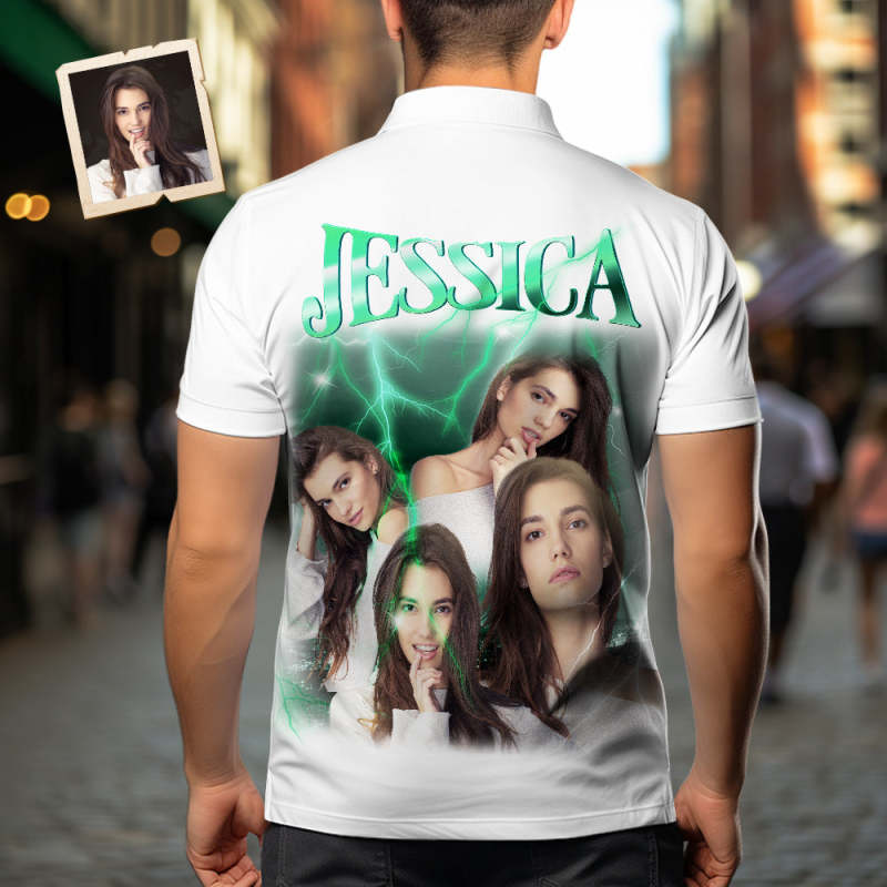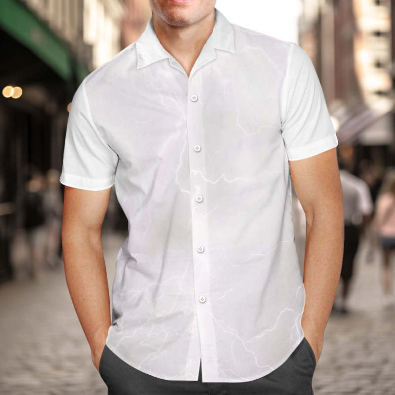 カスタ厶写真と文字アロハシャツ - オリジナル写真と名入れ可能な男性復古的な稲妻柄シャツ