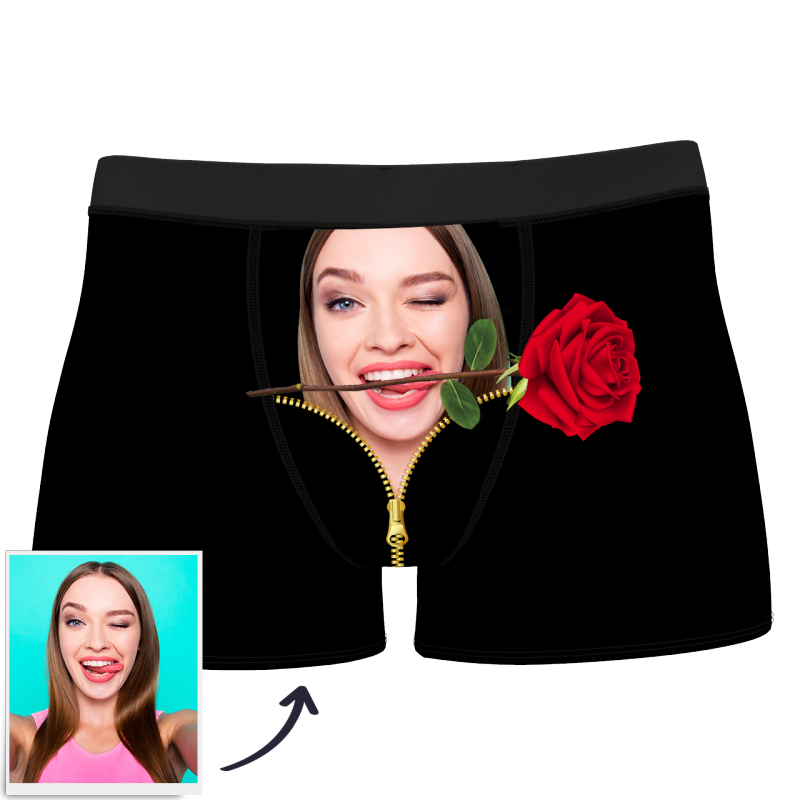 カスタムフェイスボクサーパンツ-顔写真入りローズを咬む男性へのクリスマスギフトバレンタインデープレゼント