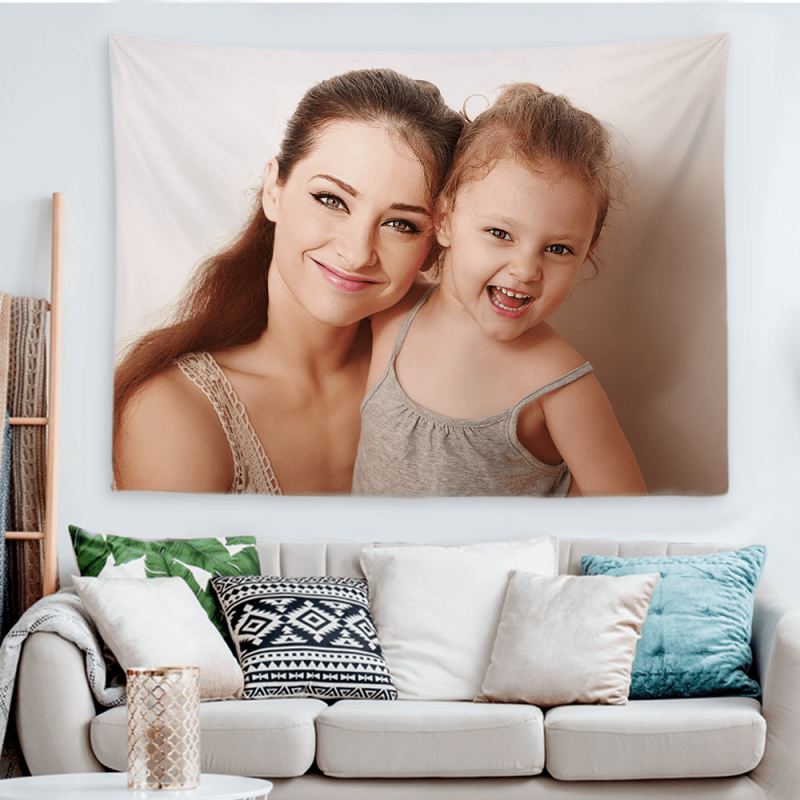 母と娘カスタム写真タペストリー短いフラシ天壁の装飾絵画をぶら下げ