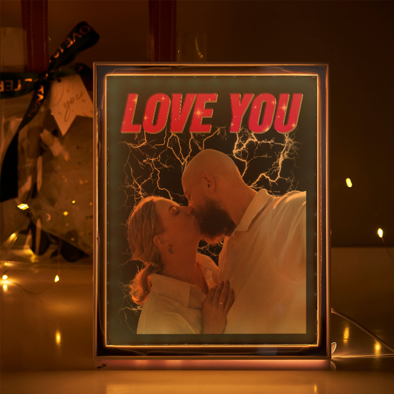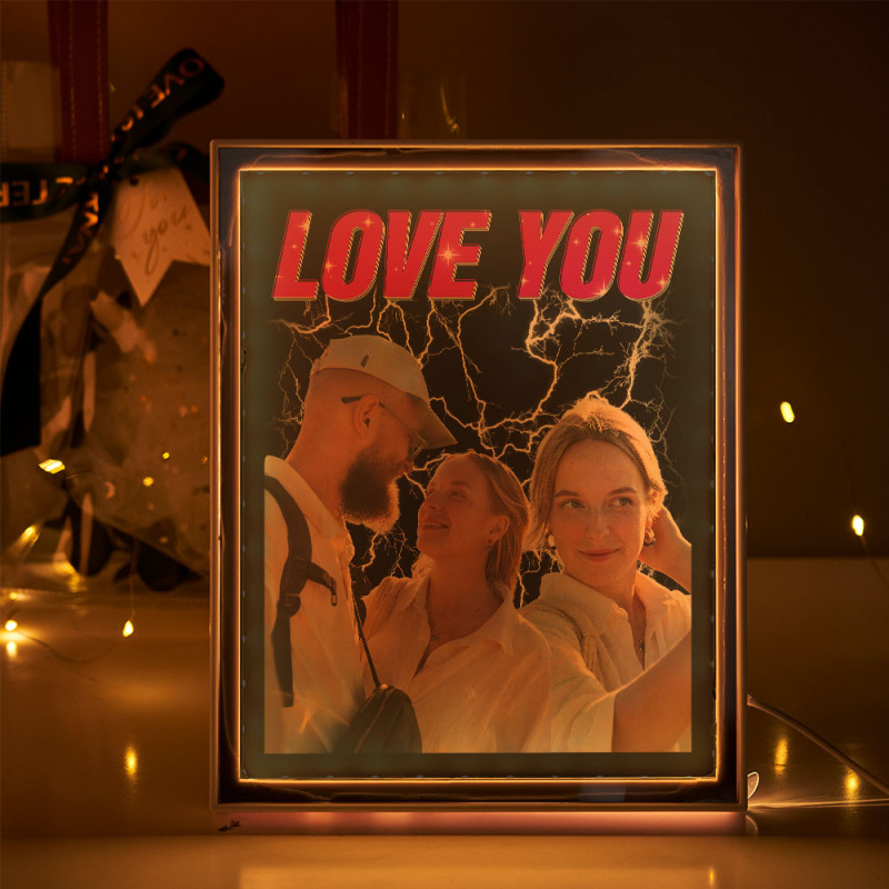 バレンタインプレゼントカスタム名と写真ホルダー Led ミラー発光ライトフォトフレーム 写真が映る鏡