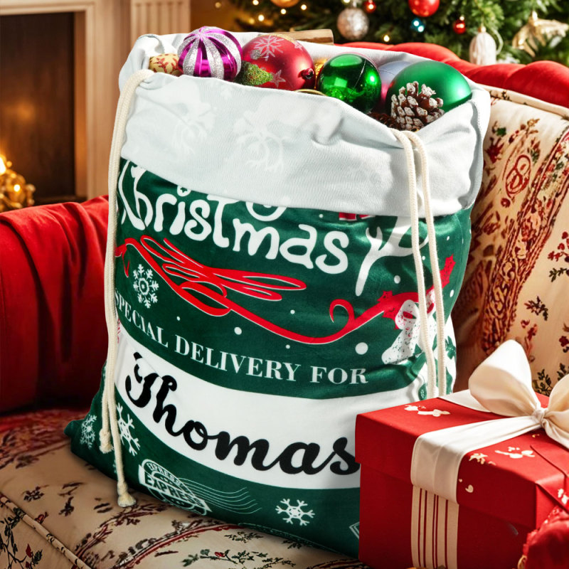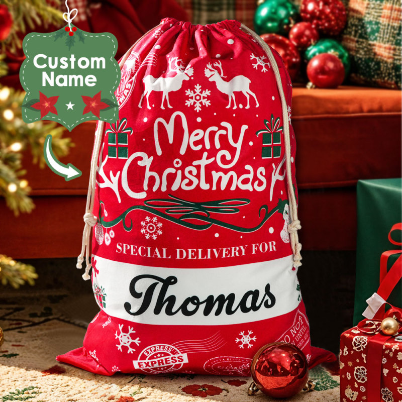 カスタム名入りギフトバッグ パーソナライズされたクリスマスサンタサック ギフト用 子供へのクリスマスプレゼント