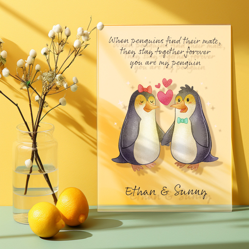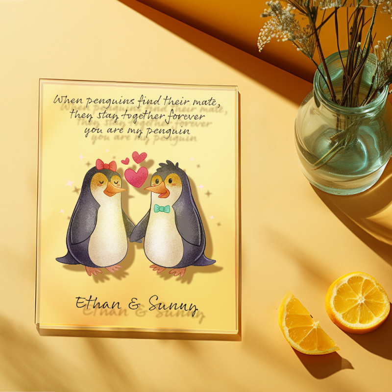 カスタム名ペンギンプラークパーソナライズされた恋人へのバレンタインギフトガールフレンドへのバレンタインギフト