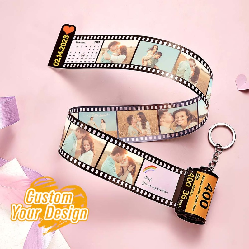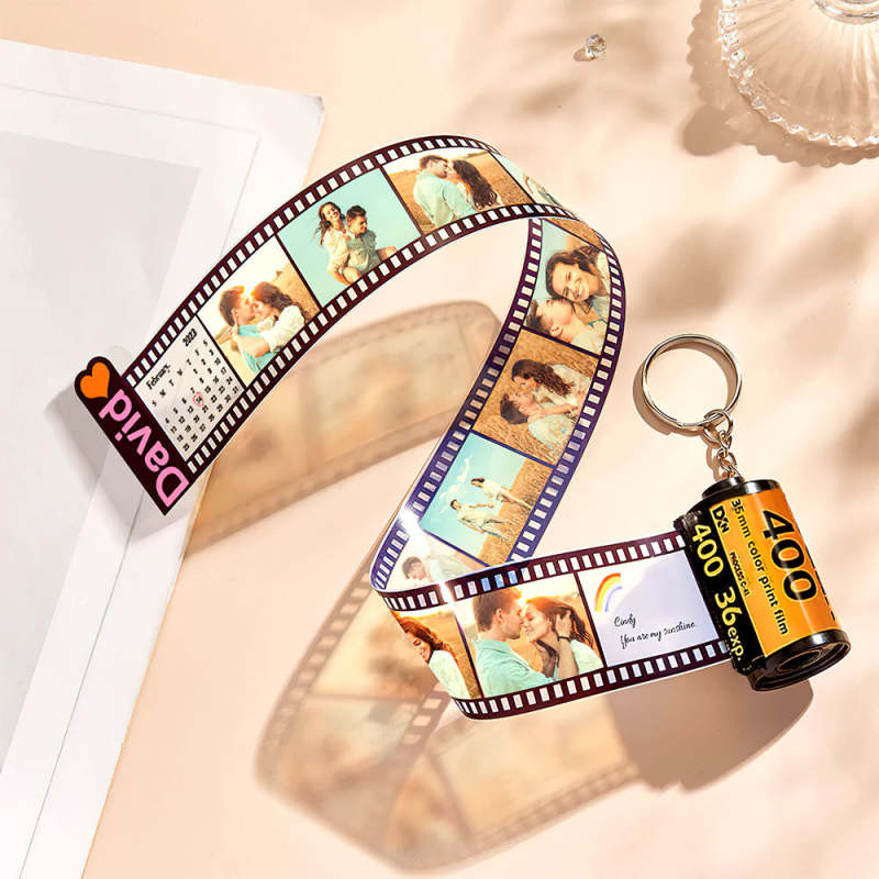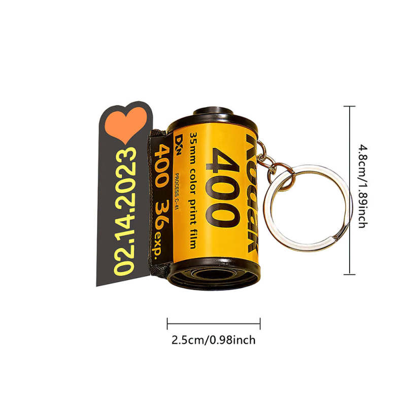 カスタム写真と記念日日付け入れ可能なフィルムロールキーホルダー- 恋人や友達への思い出が詰まった贈り物