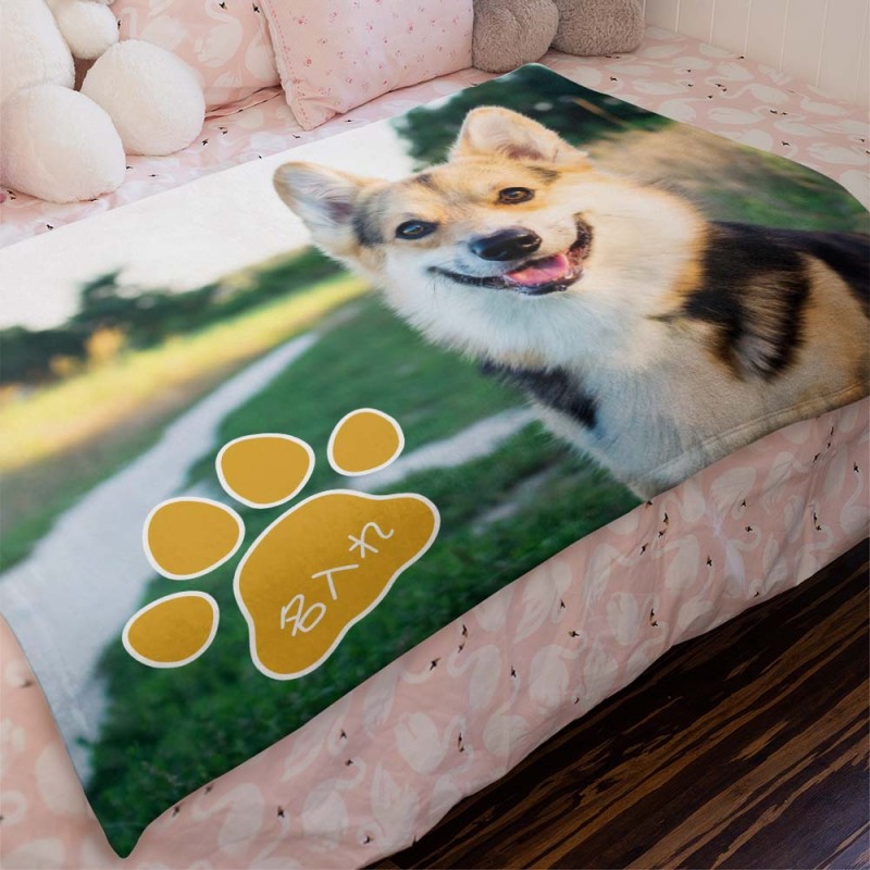 カスタムフォトブランケット-ペット写真や名入れ可能なペットの爪柄のフリース毛布ギフト