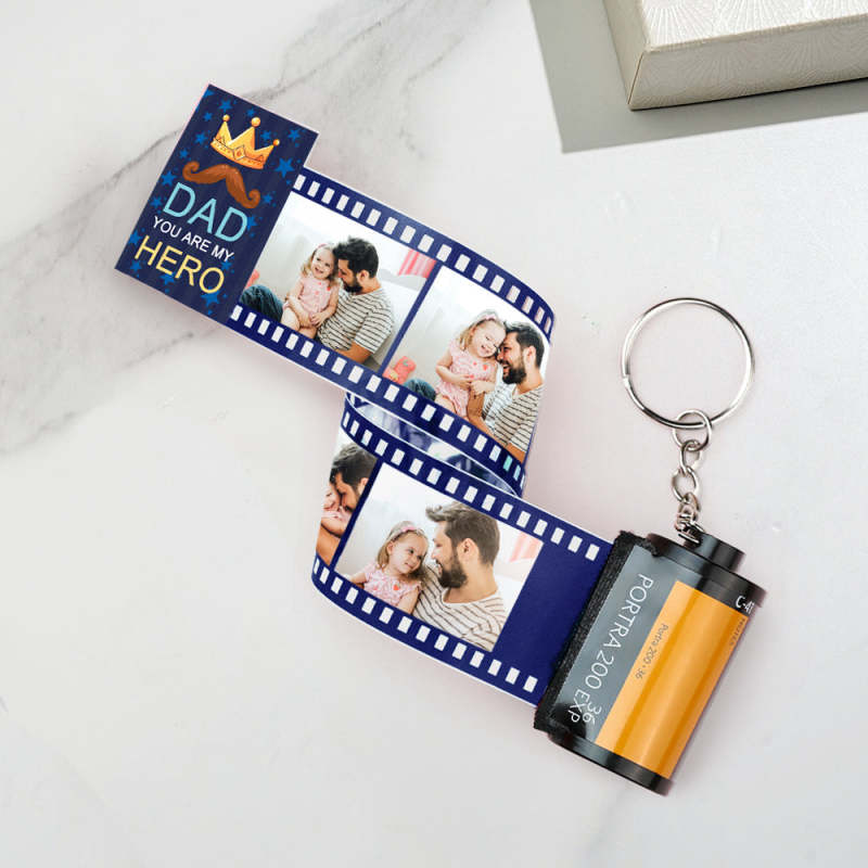 カスタムフォトフィルムロールキーホルダー - 写真入れ可能な父の日キーホルダー父へのプレゼント