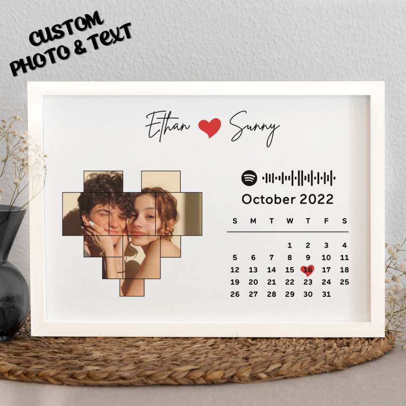 カスタムフォトカレンダーとspotifyコード付き名前付き彼女の愛するカップルへの木製フレームギフト