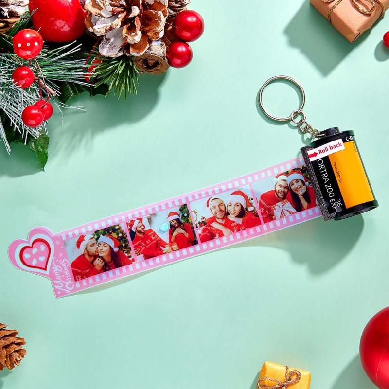 カスタムフォトフィルキーホルダー - カラフルなハート形飾りカメラキーホルダークリスマスプレゼント