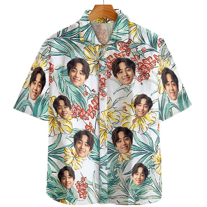 カスタム写真アロハシャツ男性用のアロハシャツロマンチックなハワイの花柄のシャツ写真シャツギフトおしゃれ