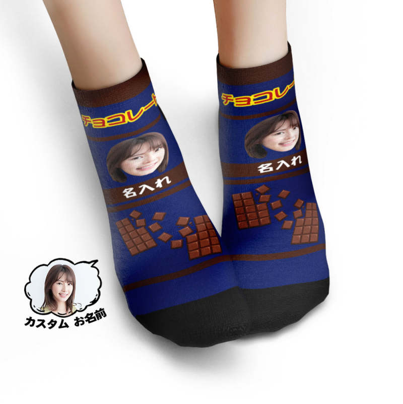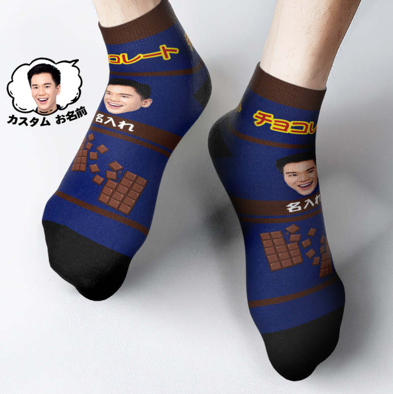カスタムフェイスソックス-写真や名前入り可能なチョコレート柄の可愛いオリジナル靴下