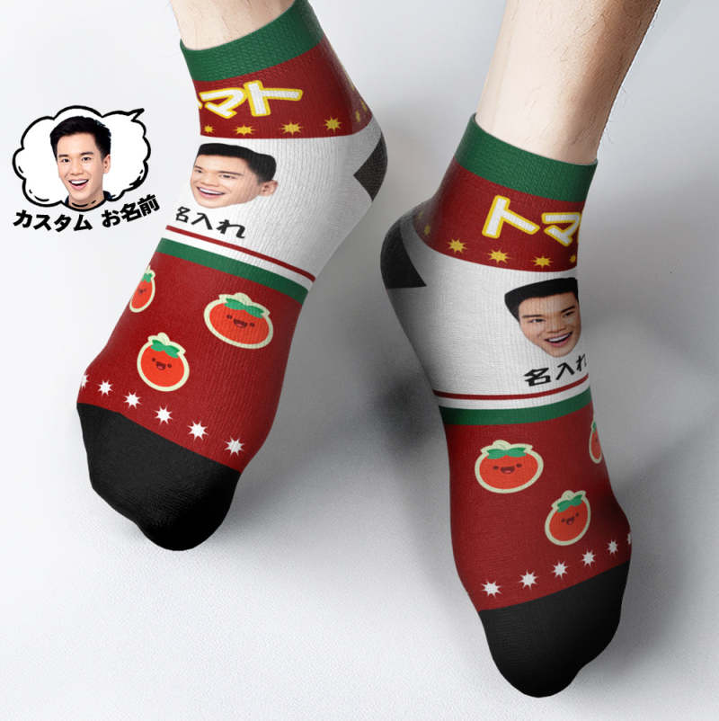 カスタムフェイスソックス-写真や名前入り可能なトマト柄の可愛いオリジナル靴下