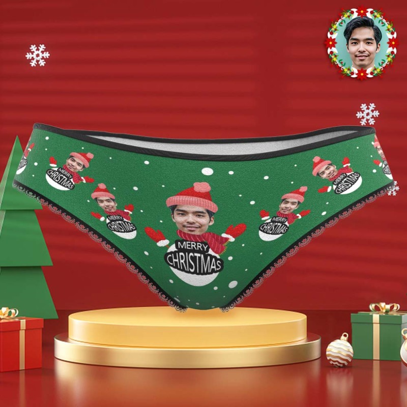 カスタムフォトパンティ-写真入れ可能なオリジナルクリスマスプレゼント女性用下着-雪だるまメリークリスマス