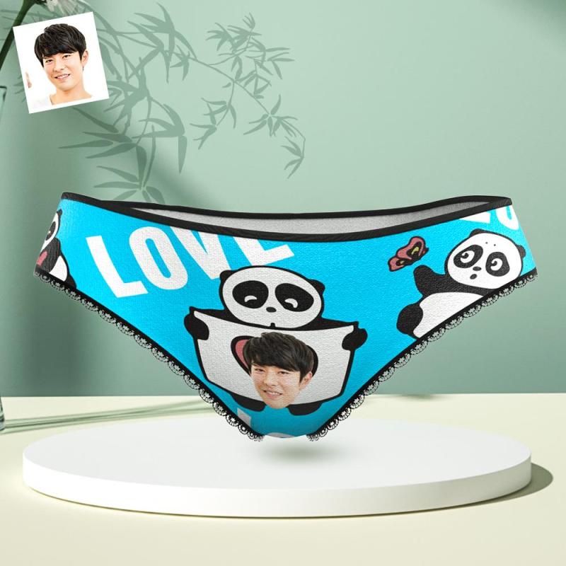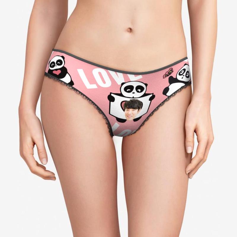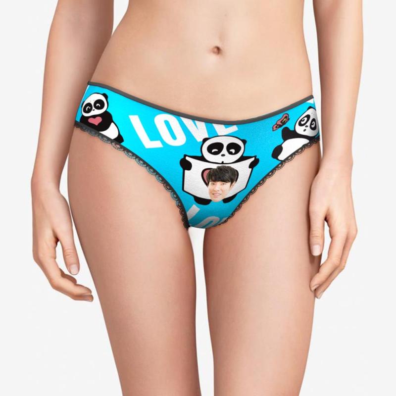 カスタムフォトパンティ-写真入れ可能なパンダとハート柄の女性用下着