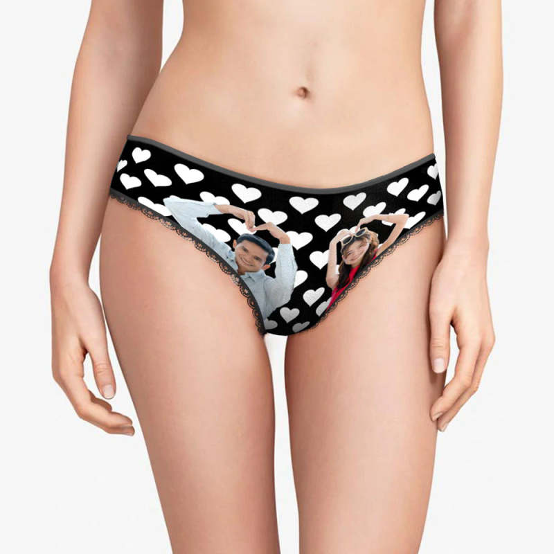 カスタムフォトパンティー-カップル写真入れ可能なオリジナルバレンタインプレゼント女性用下着-恋人へ