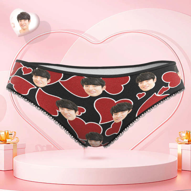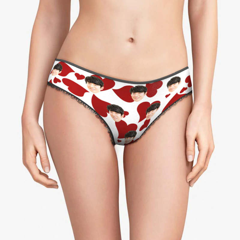 カスタムフォトパンティー-写真入れ可能なオリジナルバレンタインプレゼント女性用下着-ハートだらけ