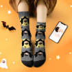 カスタムフェイスソックス-写真入れ名入れ可能なコウモリ柄のハロウィンオリジナル靴下プレゼント