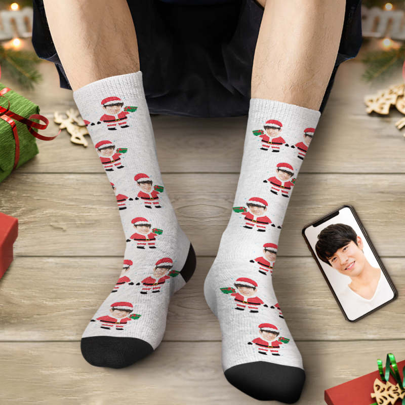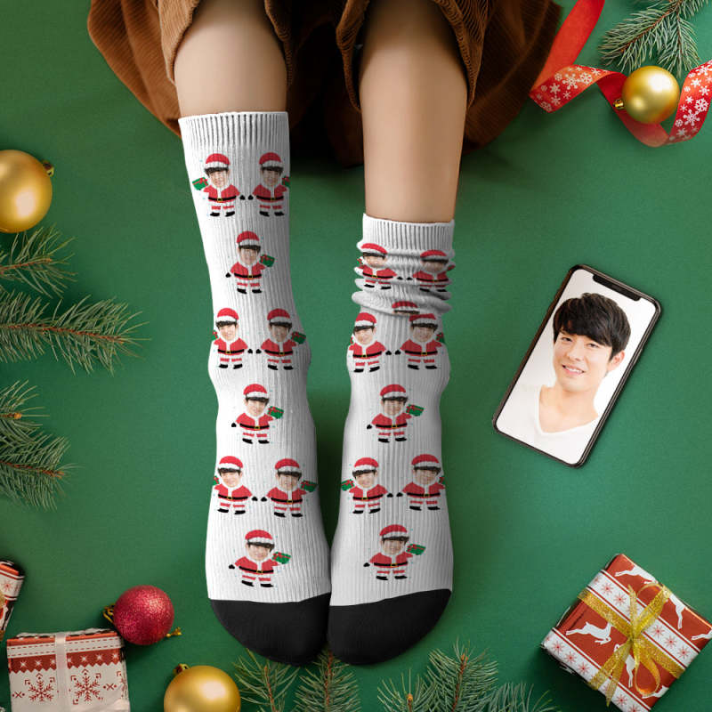 カスタムフェイスソックス-写真入れ名入れ可能なオリジナルクリスマス靴下プレゼント-かわいいサンタクロース柄