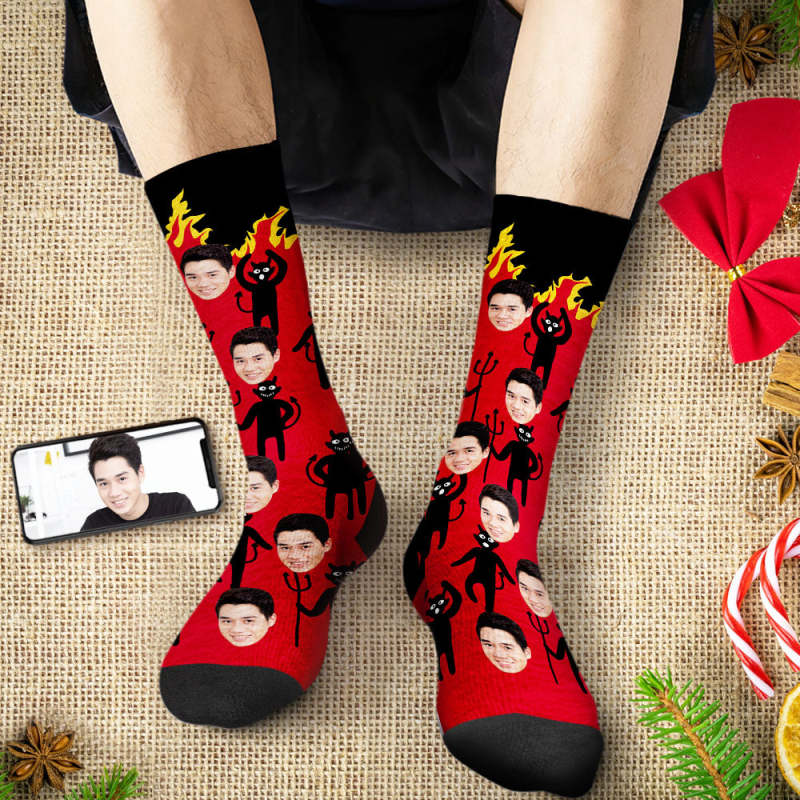 カスタムフェイスソックス-写真入れ名入れ可能な面白い宇宙飛行士とロケット柄のオリジナル靴下プレゼント