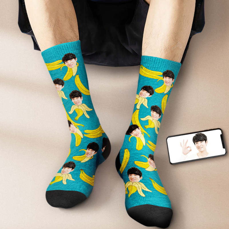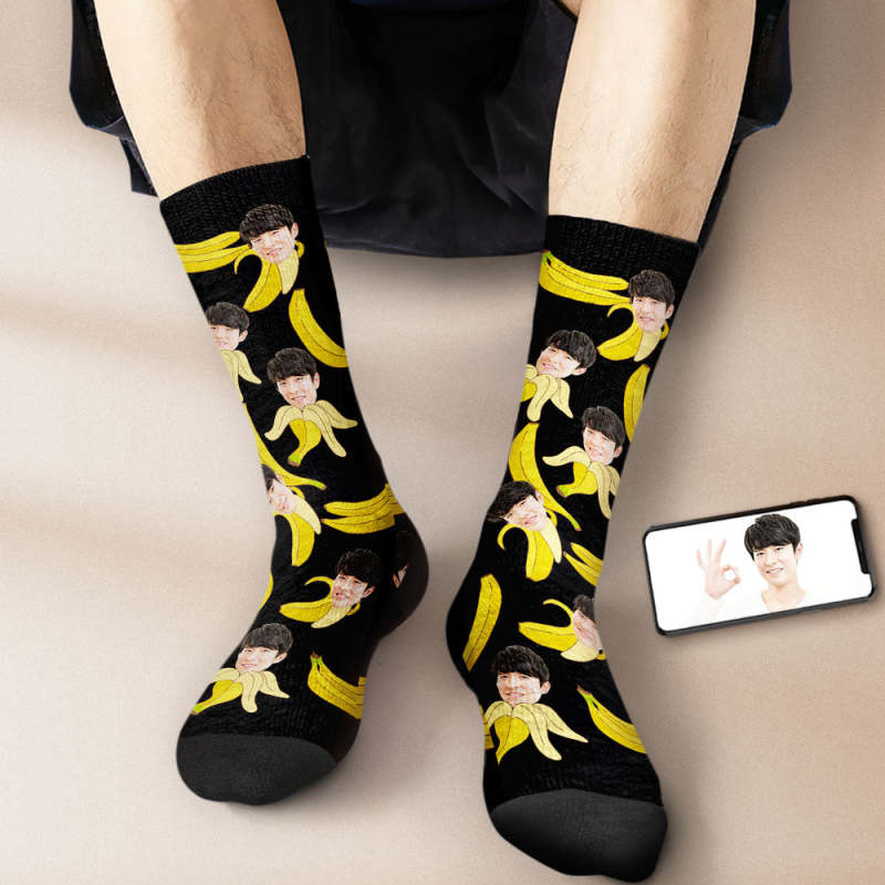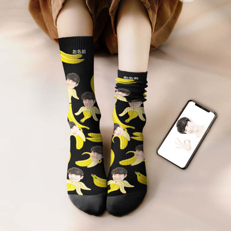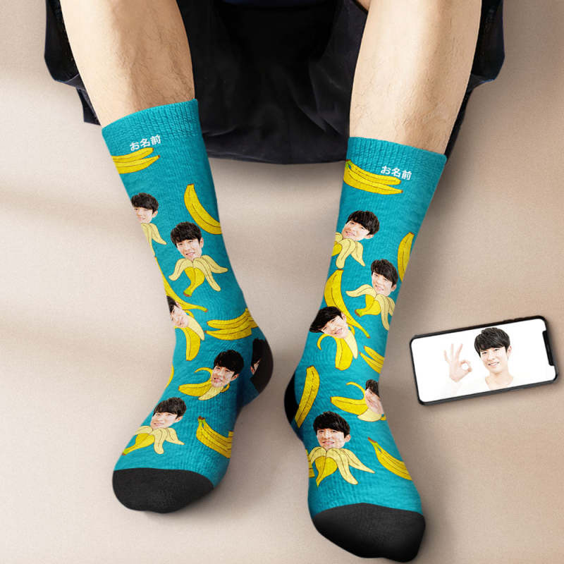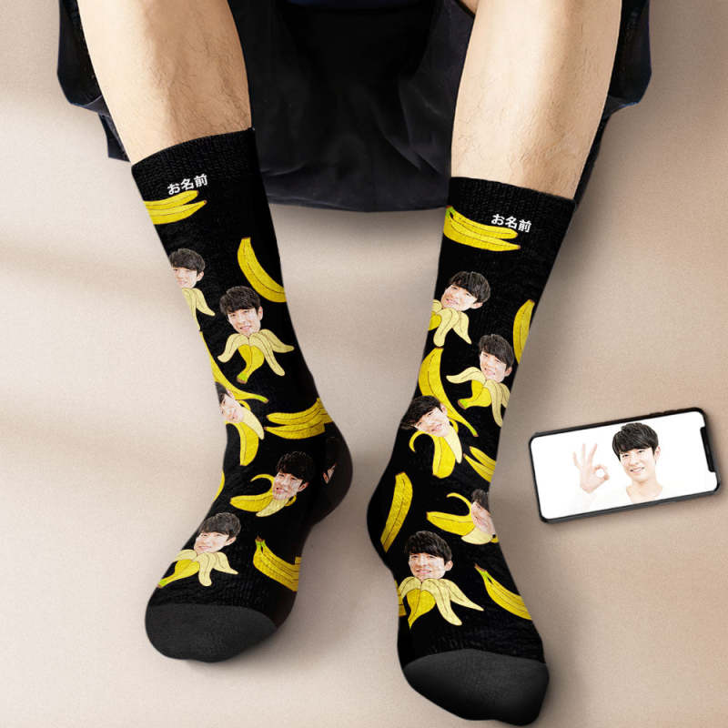 カスタムフェイスソックス-写真入り名入れ可能なバナナ柄のオリジナル靴下プレゼント
