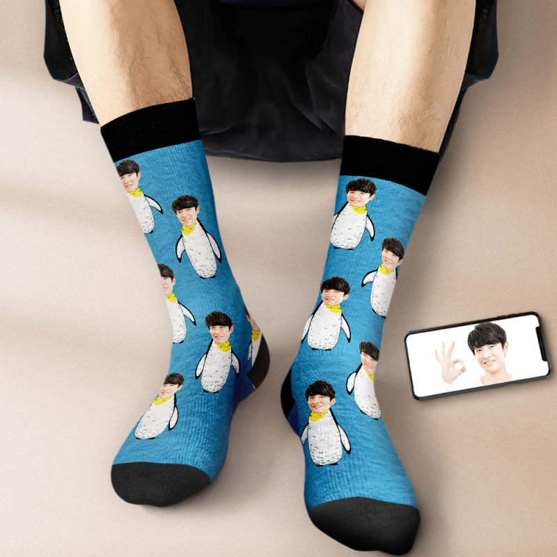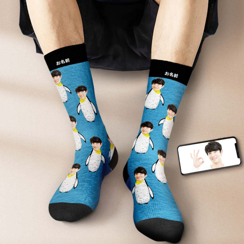 カスタムフェイスソックス-写真入り名入れ可能なかわいいペンギン柄のオリジナル靴下プレゼント