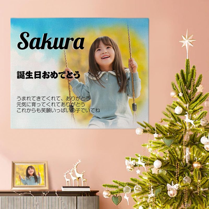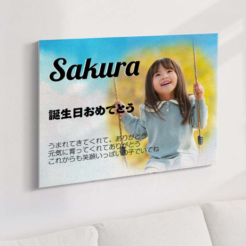 オリジナル誕生日フォト装飾絵画-家族写真や名入れ可能な写真の壁の装飾絵画キャンバスプレゼント