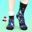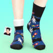 カスタム厚手フェイスソックス-写真入れ名入れ可能な面白い宇宙飛行士とロケット柄のオリジナル秋冬用暖かい靴下プレゼント