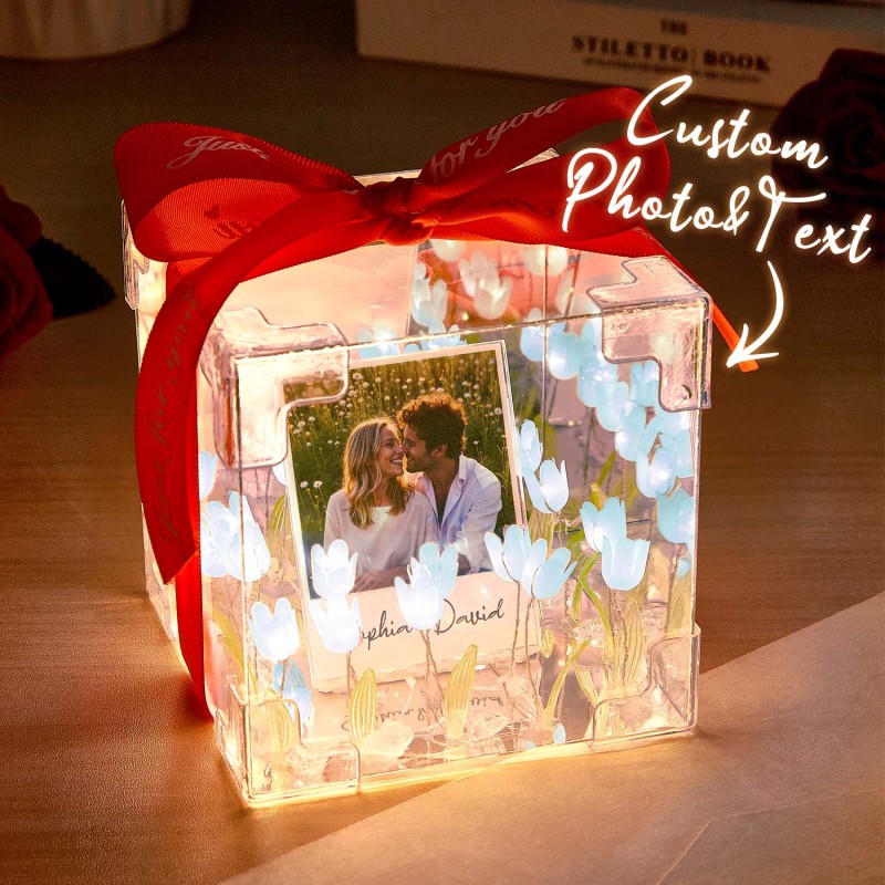 カスタムフォトチューリップフラワーインフィニティミラーボックスあなたの写真とテキストでインフィニティミラーフラワーdiyキット